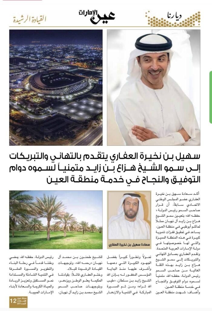 وأضاف: شهدت منطقة العين تحولاً وتطوراً كبيراً بفضل الجهود الكبيرة منذ البداية على يد المؤسس المغفور له بإذن الله الشيخ زايد بن سلطان، “طيب الله ثراه”، ومن ثم المسيرة المباركة في التنمية والازدهار برعاية الشيخ طحنون بن محمد آل نهيان “رحمه الله”، وتوجيهات القيادة الرشيدة للبلاد.