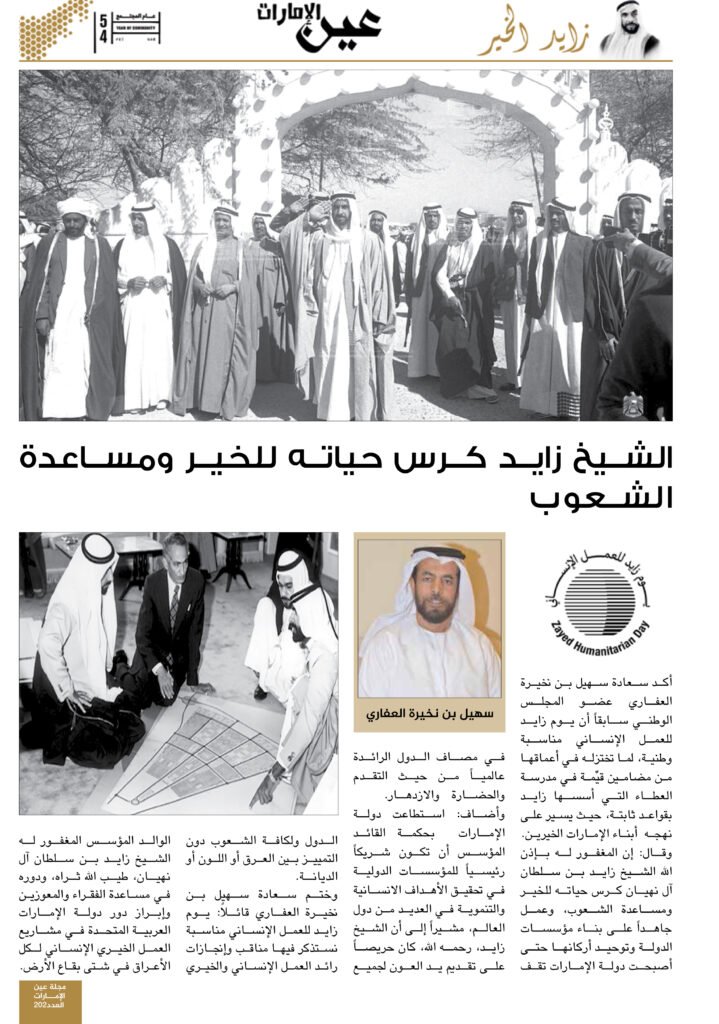 أكد سعادة سهيل بن نخيرة العفاري عضو المجلس الوطني سابقاًأن يوم زايد للعمل الإنساني مناسبة وطنية، لما تختزله في أعماقها من مضامين قيِّمة في مدرسة العطاء التي أسسها زايد بقواعد ثابتة، حيث يسير على نهجه أبناء الإمارات الخيرين.