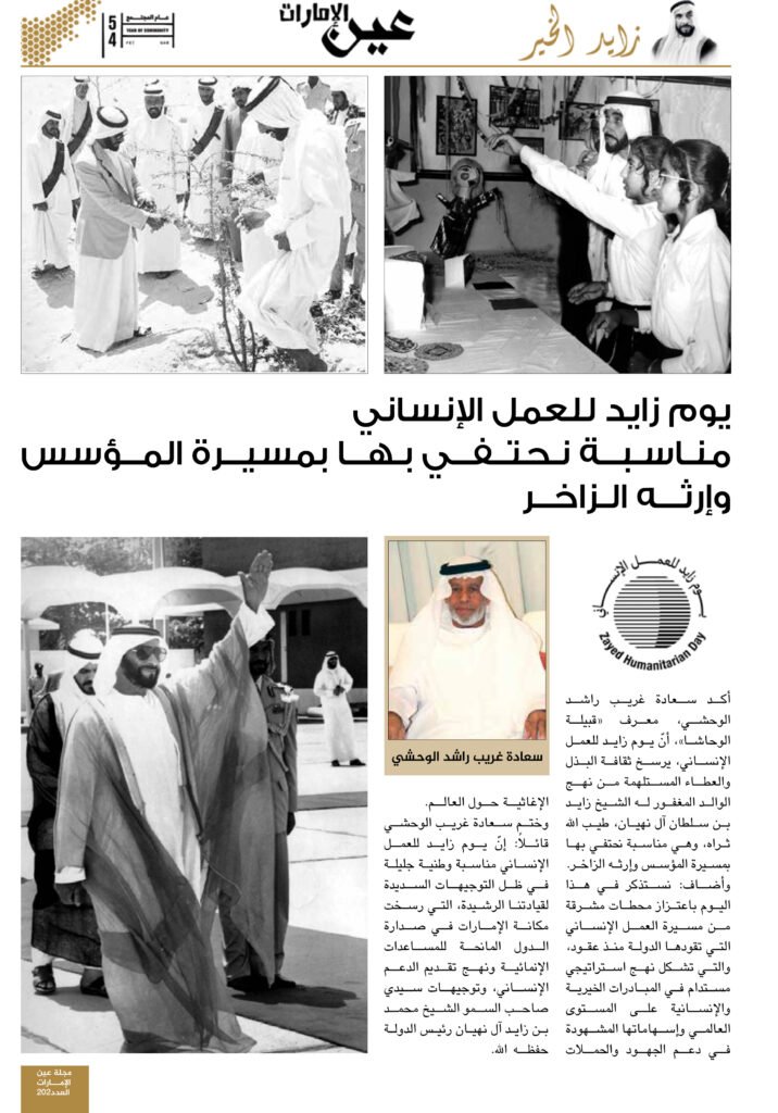 أكد سعادة غريب راشد الوحشي، معرف “قبيلة الوحاشا”، أنّ يوم زايد للعمل الإنساني، يرسخ ثقافة البذل والعطاء المستلهمة من نهج الوالد المغفور له الشيخ زايد بن سلطان آل نهيان، طيب الله ثراه، وهي مناسبة نحتفي بها بمسيرة المؤسس وإرثه الزاخر.