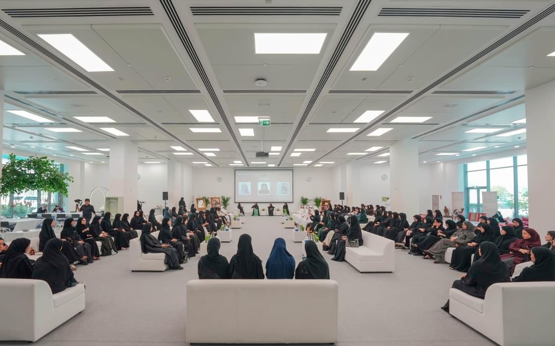 وأقيمت خلال الفعالية جلسة نقاشية، بعنوان “نساء إماراتيات ملهمات”، شاركت فيها الدكتورة ميثاء الهاملي شاعرة وكاتبة ورائدة أعمال، والمهندسة فاطمة الظاهري أول مهندسة إماراتية تعمل في قطاع المياه والكهرباء في إمارة أبوظبي، والمهندسة لطيفة بنت عيسى فنانة تشكيلية متخصصة في الدبلوماسية الثقافية وتاريخ وتراث دولة الإمارات، بحضور سعادة البروفيسور إبراهيم الحجري رئيس الجامعة، وعدد من المسؤولين في الهيئة والجامعة وأعضاء الهيئة التدريسية والطالبات.
