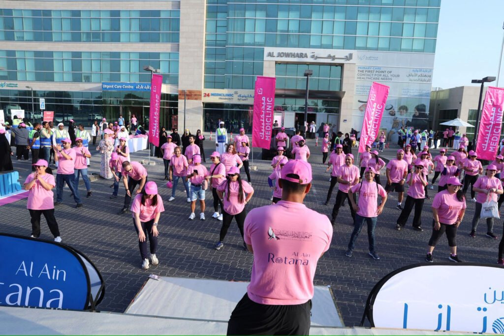 نظمت جمعية الإمارات للسرطان، و”ميديكلينيك” مستشفى الجوهرة وفندق العين روتانا مسيرة وردية بالتزامن مع الشهر العالمي للتوعية بسرطان الثدي، وذلك في منطقة الجيمي بمدينة العين شارك فيها الشيخ الدكتور سالم محمد بن ركاض، رئيس مجلس إدارة الجمعية، والدكتور المحامي عبدالله الكعبي، نائب الرئيس، وآدم محمد البلوشي المدير التنفيذي في الجمعية، ود. فاطمة عيسى عضو مجلس الإدارة، وفيليب تايلر مدير المستشفى وحسان النعمة مدير التسويق وعدد من المسؤولين في مستشفيات “ميديكلينيك”، وطلاب من جامعة الإمارات وجامعة العين ومدرسة اليحر الخاصة وشرطة أبوظبي وفريق “كلنا شرطة التطوعي”، ومركز النقل المتكامل ودائرة الثقافة والسياحة في أبوظبي، إضافة إلى جمع من السيدات، وانطلقت المسيرة في جوار مركز العين للمؤتمرات والاحتفالات، بحضور أكثر من 300 مشارك من مختلف الأعمار، رافعين شعار ” بداخلك نور يضيء العالم حافظي عليه”، ثم أقيم احتفال أمام مستشفى الجوهرة تضمن كلمات وفقرات رياضية.
